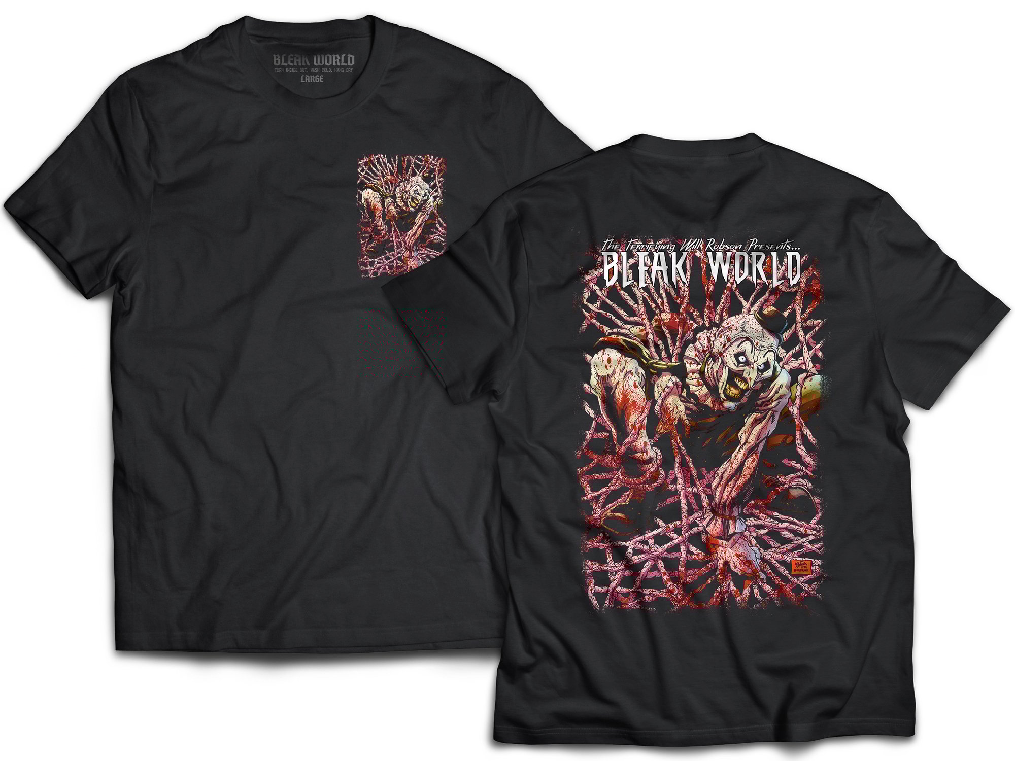 Bleak World Presents Our Robson Art Collaboration T-Shirt with the extraordinary Comic Book Artist Will Robson known for his work with Marvel, DC and his creator owned titles such as Mobster Mash and Outbreaks!